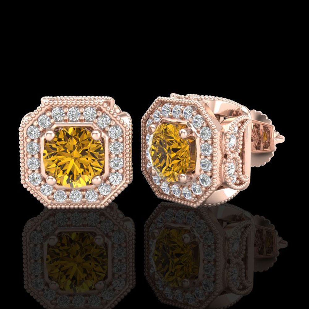 REF-290M9G - SKU: 38289 ---- 2.75 ctw Intense Fancy Yellow Diamond Art Deco Earrings 18k Rose Gold