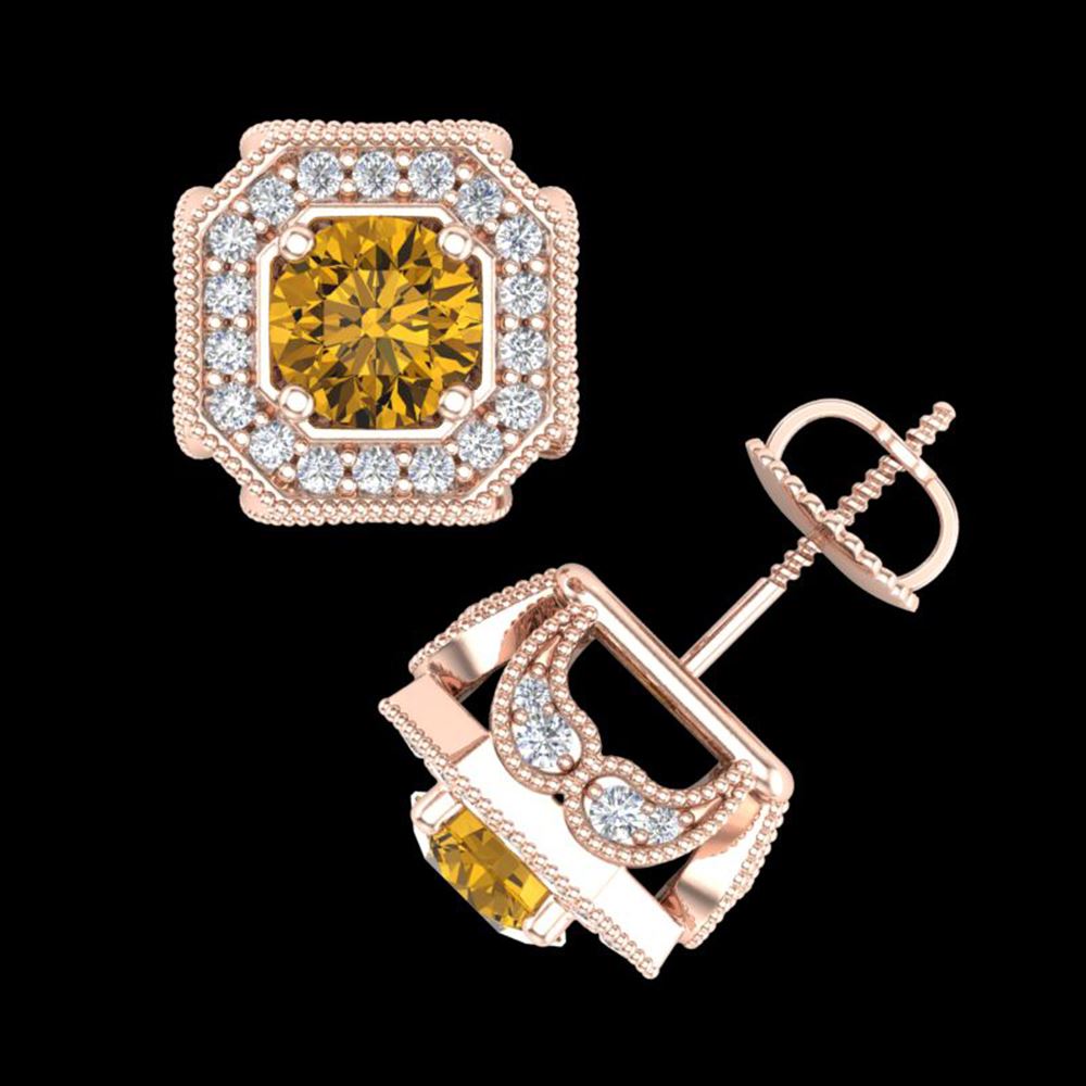 REF-290M9G - SKU: 38289 ---- 2.75 ctw Intense Fancy Yellow Diamond Art Deco Earrings 18k Rose Gold
