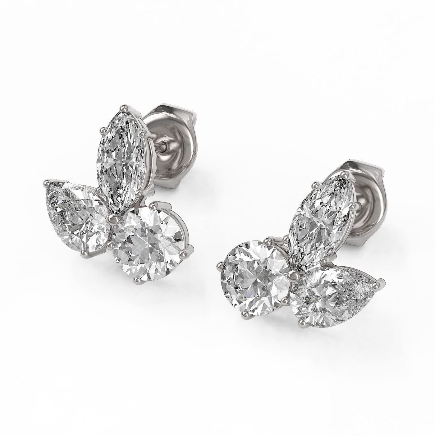 SKU: 49968 ---- 2.75 ctw Mix Cut Diamond Designer Earrings 18K White Gold