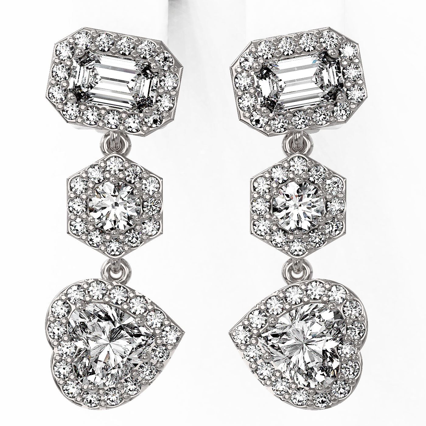 REF-455H2R - SKU: 47007 ---- 2.75 ctw Mix Cut Diamonds Designer Earrings 18K White Gold