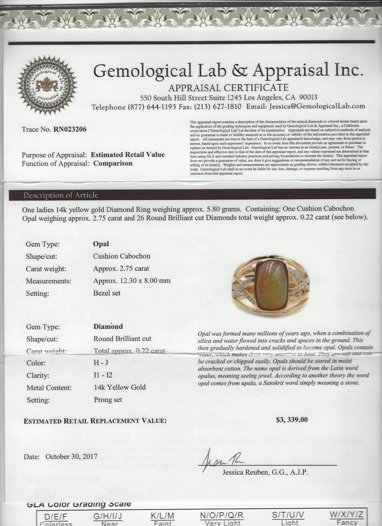 One 2.75ct Opal and Diamond Ring - 14KT Yellow Gold. GLA certified. See Appraisal for more details. GLA Appraised.