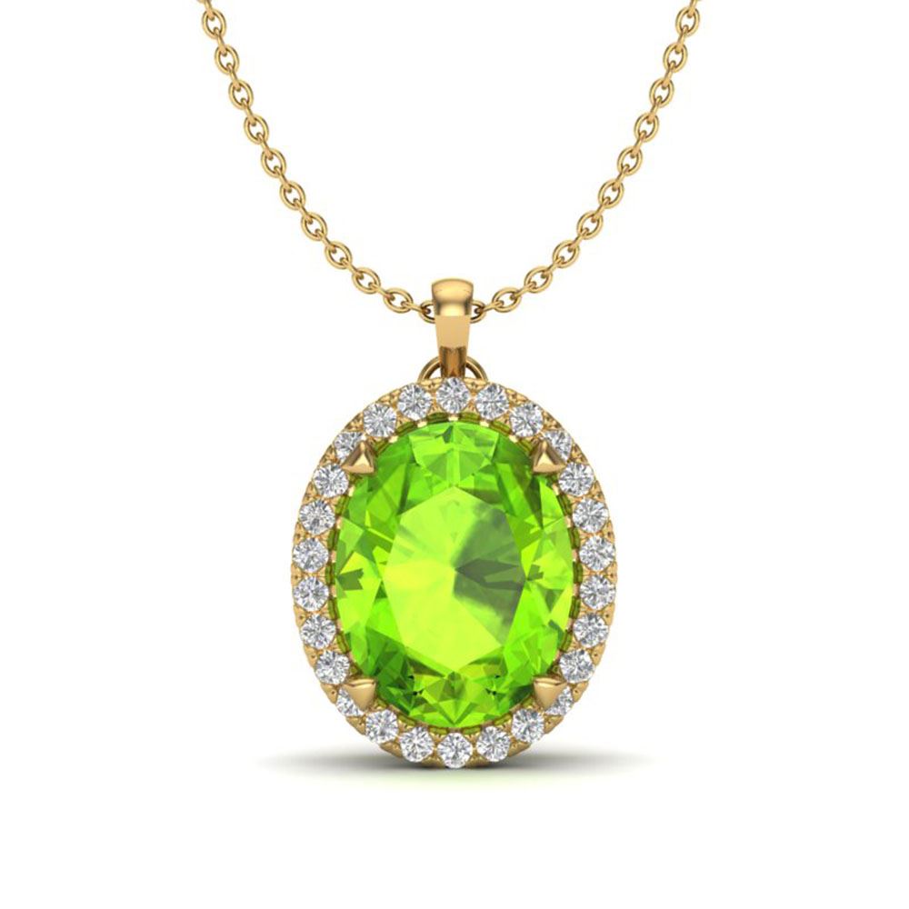 REF-39K9Y - SKU: 20595 ---- 2.75 ctw Peridot & Micro VS/SI Diamond Halo Necklace 18k Yellow Gold