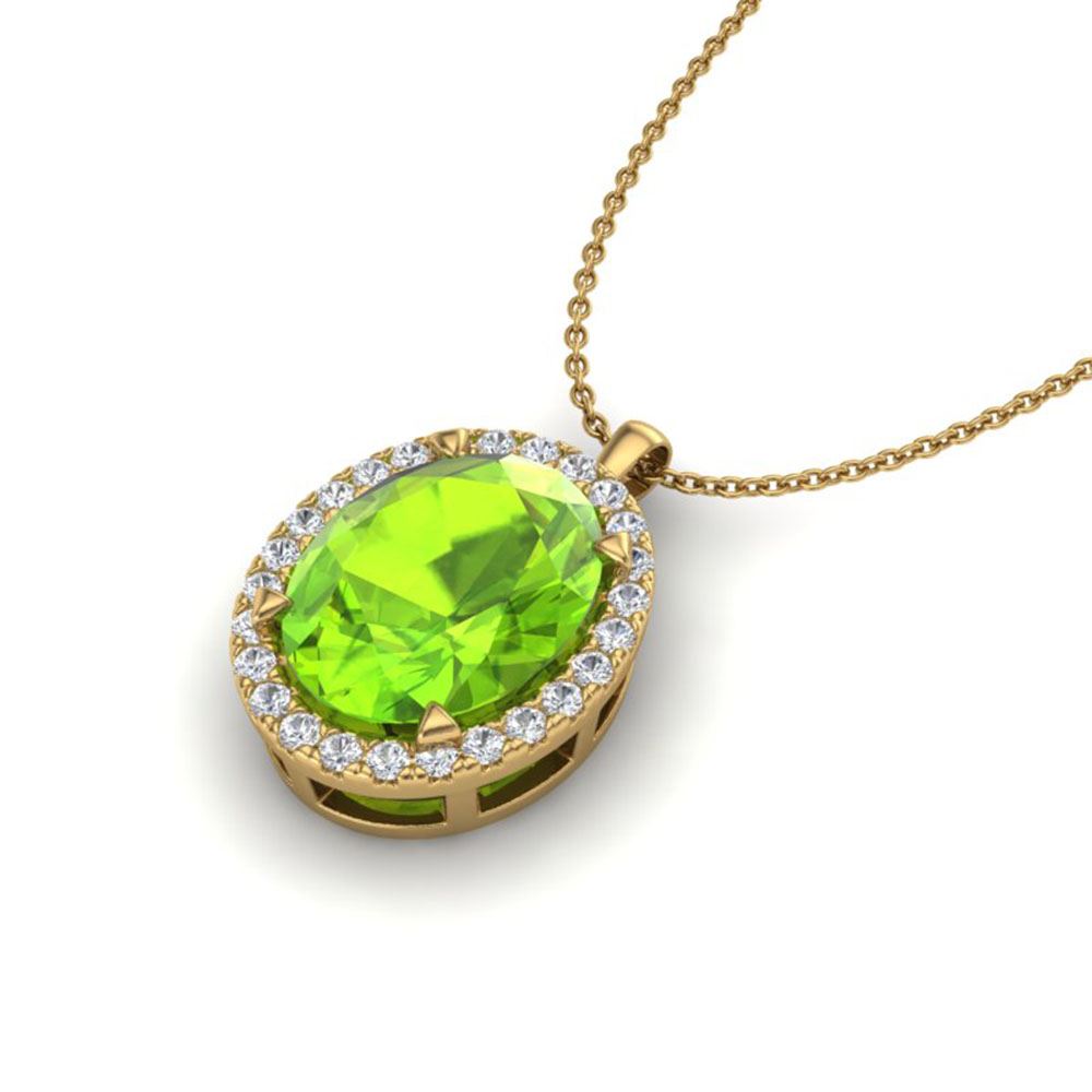 REF-39K9Y - SKU: 20595 ---- 2.75 ctw Peridot & Micro VS/SI Diamond Halo Necklace 18k Yellow Gold