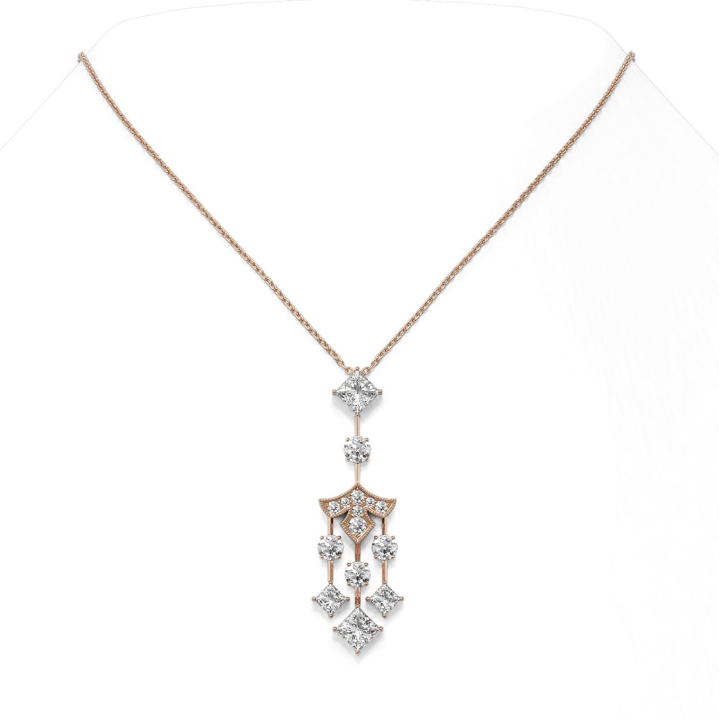 REF-369X3A - SKU: 49039 ---- 2.75 ctw Princess Cut Diamond Necklace 18K Rose Gold