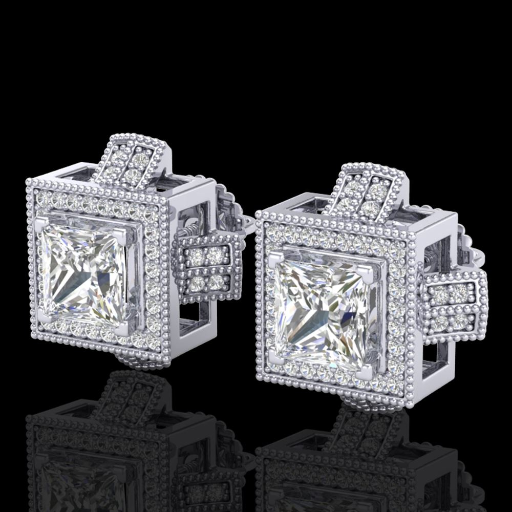 REF-684H3R - SKU: 37187 ---- 2.75 ctw Princess VS/SI Diamond Micro Pave Stud Earrings 18k White Gold