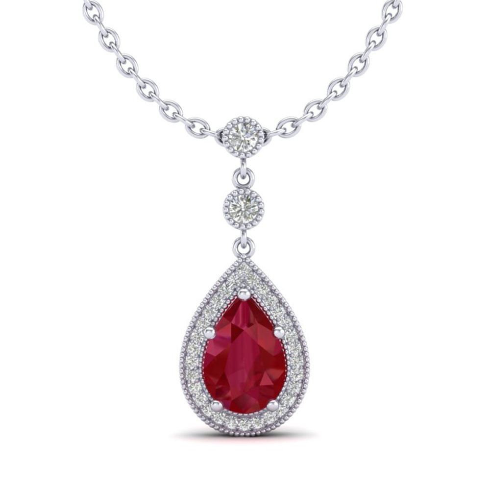 REF-44G4W - SKU: 23138 ---- 2.75 ctw Ruby & Micro Pave VS/SI Diamond Necklace 18k White Gold