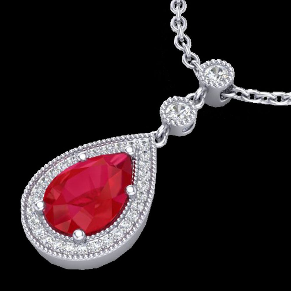 REF-44H4R - SKU: 23138 ---- 2.75 ctw Ruby & Micro Pave VS/SI Diamond Necklace 18k White Gold