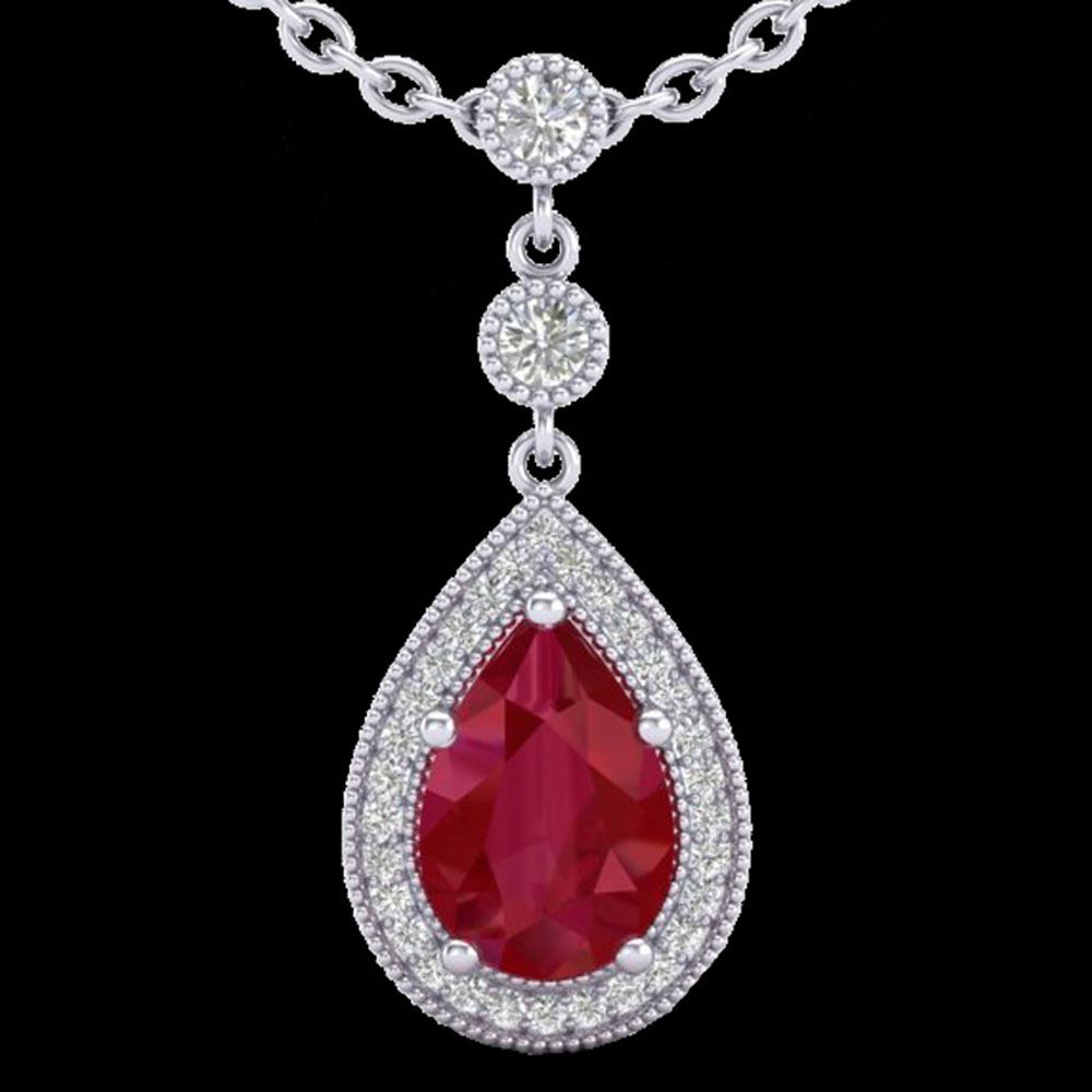 REF-44H4R - SKU: 23138 ---- 2.75 ctw Ruby & Micro Pave VS/SI Diamond Necklace 18k White Gold