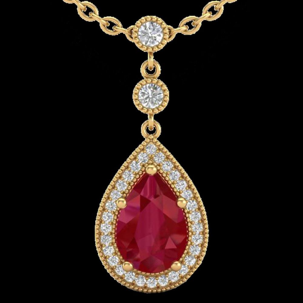 REF-44X4A - SKU: 23139 ---- 2.75 ctw Ruby & Micro Pave VS/SI Diamond Necklace 18k Yellow Gold