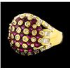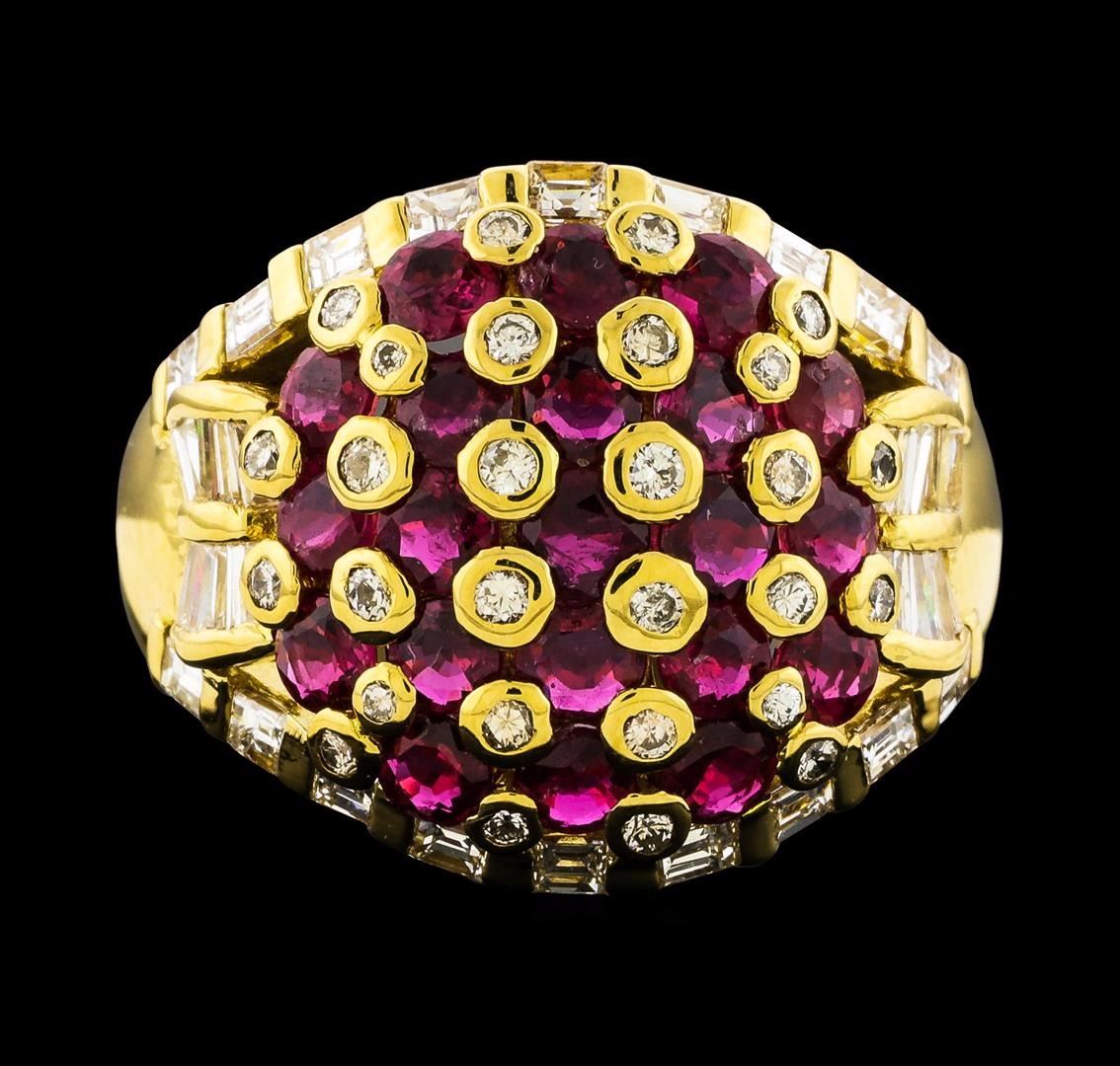 One ring featuring: 18KT Yellow Gold containing Ruby with a total weight of 2.75ct and Diamonds with a total weight of 1.15ct. Total Weight of Ring: 7.3 grams.