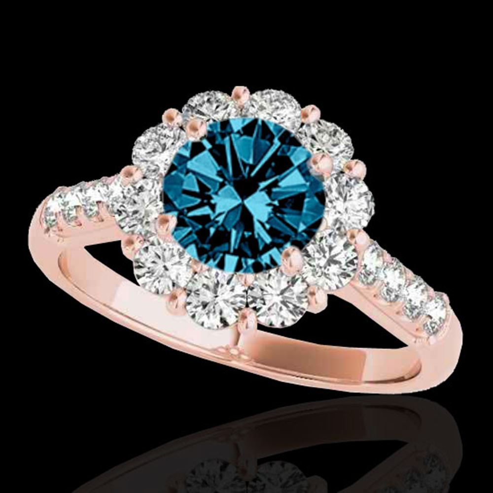 REF-209F9M - SKU: 33433 ---- 2.75 ctw SI Certified Fancy Blue Diamond Halo Ring 10k Rose Gold
