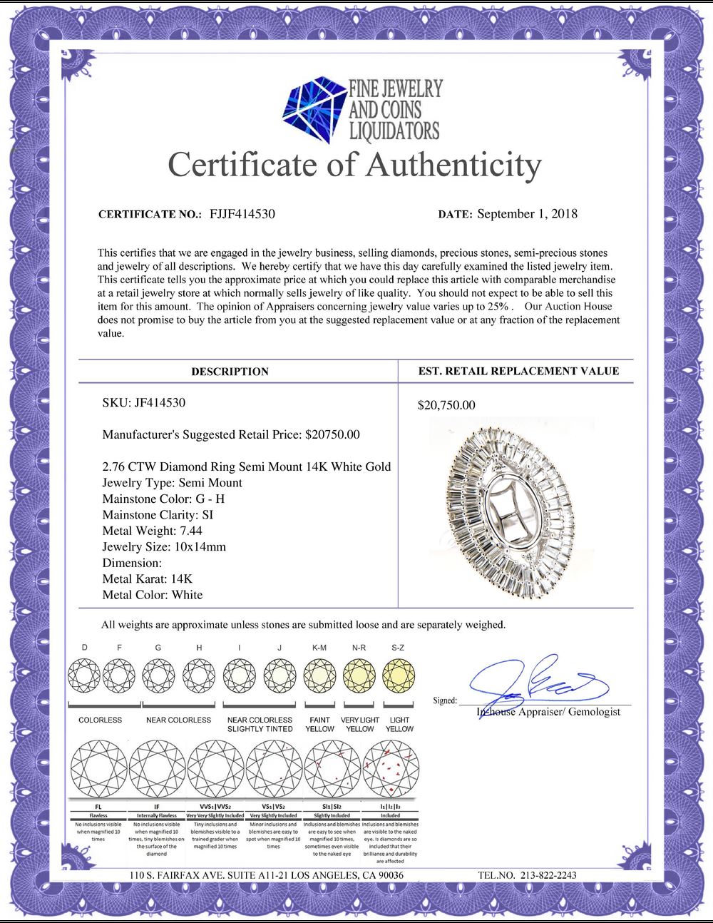 REF-274R7K - JF414530 ---- 2.76 CTW White Round Diamond & Baguette Semi Mount Ring 14K White Gold