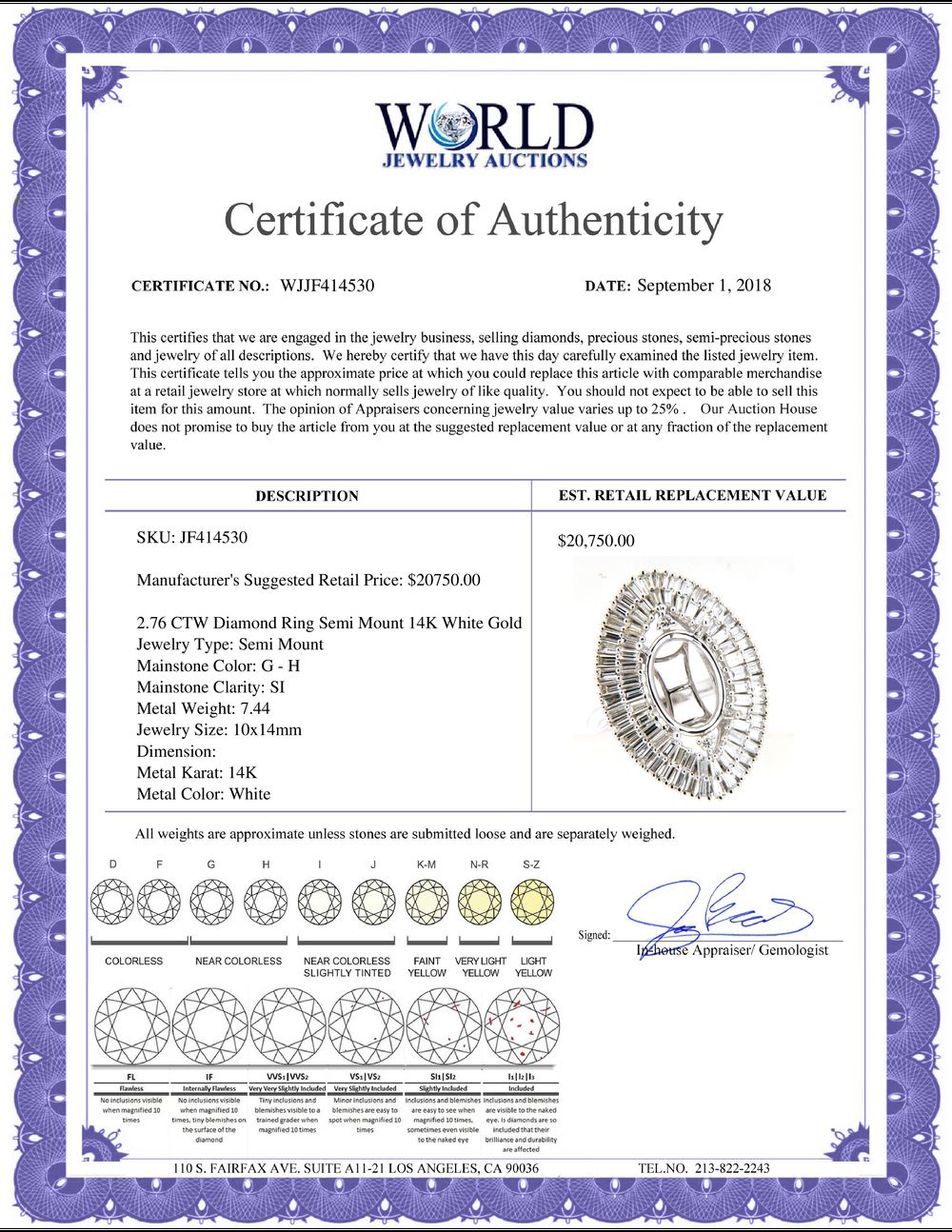 REF-274R7K - JF414530 ---- 2.76 CTW White Round Diamond & Baguette Semi Mount Ring 14K White Gold