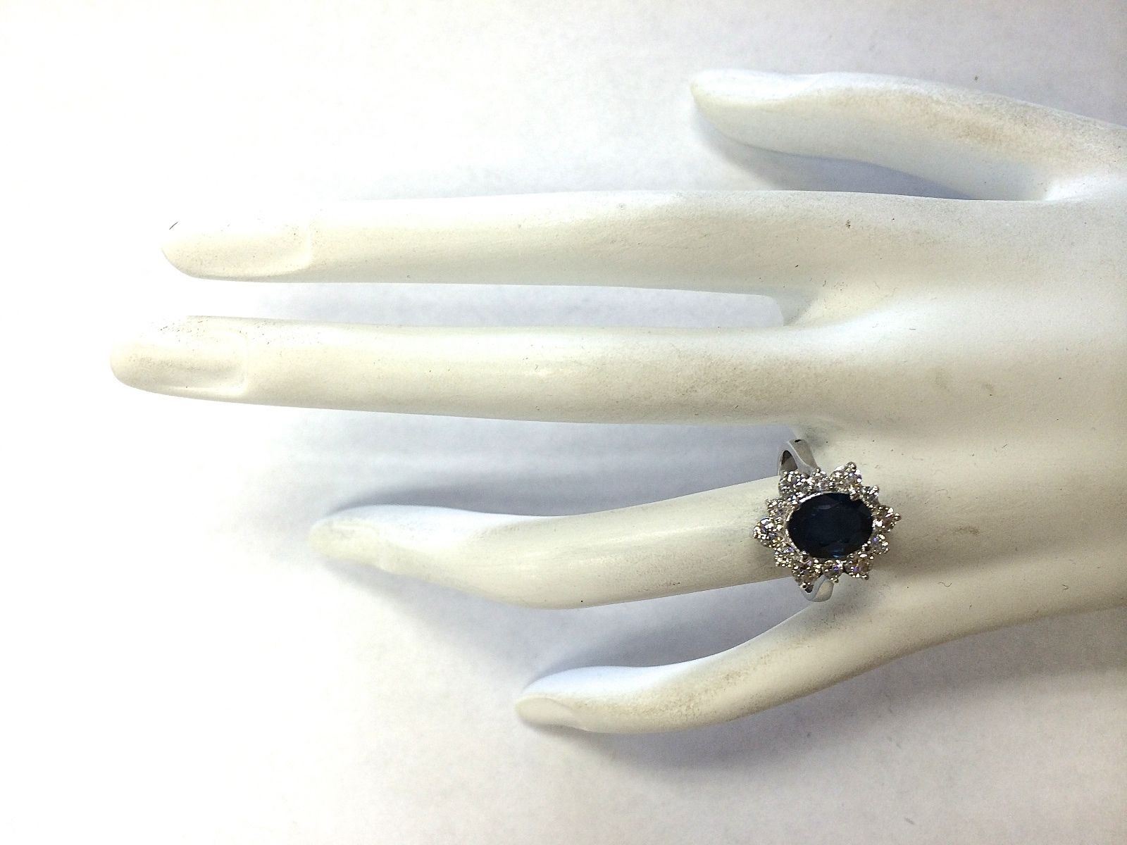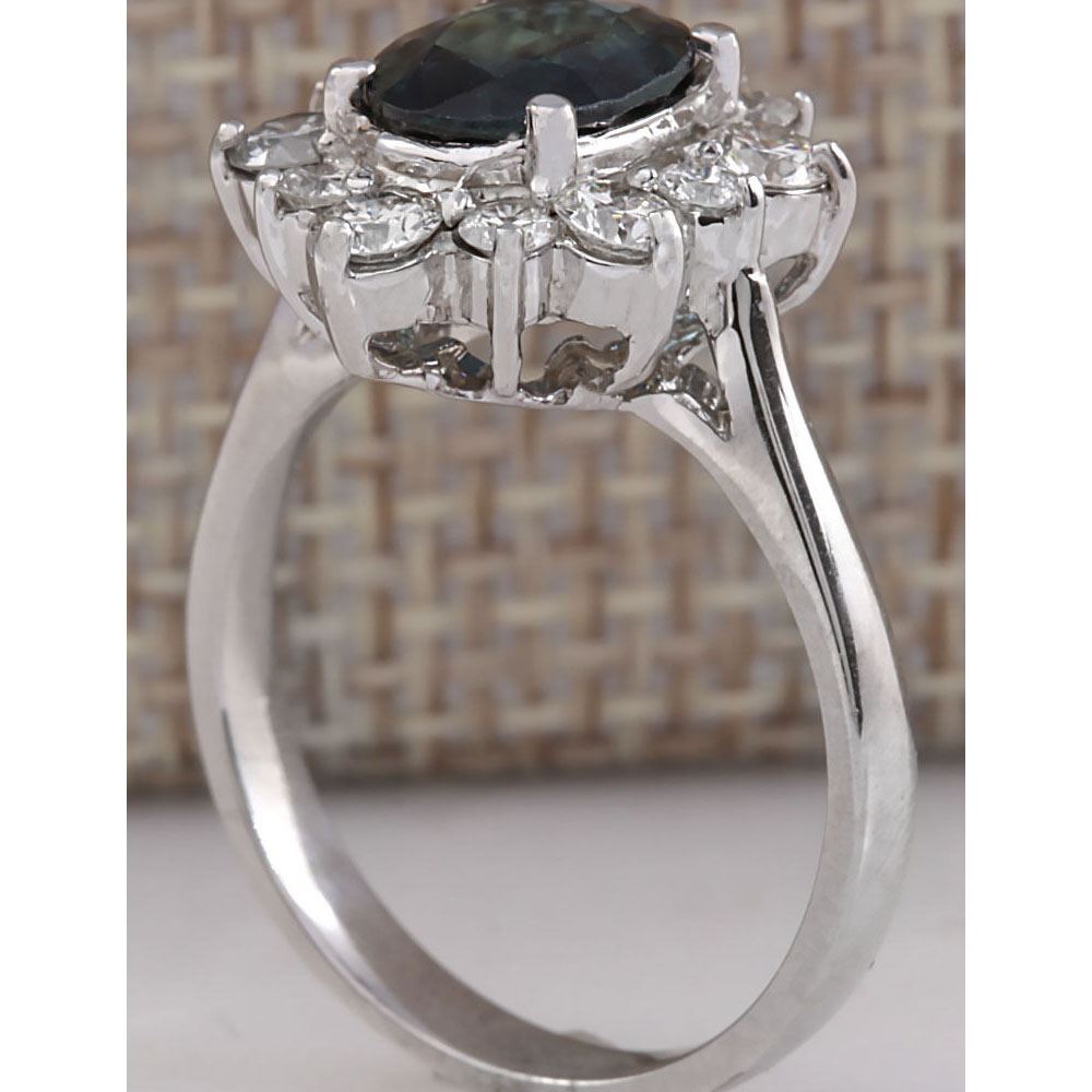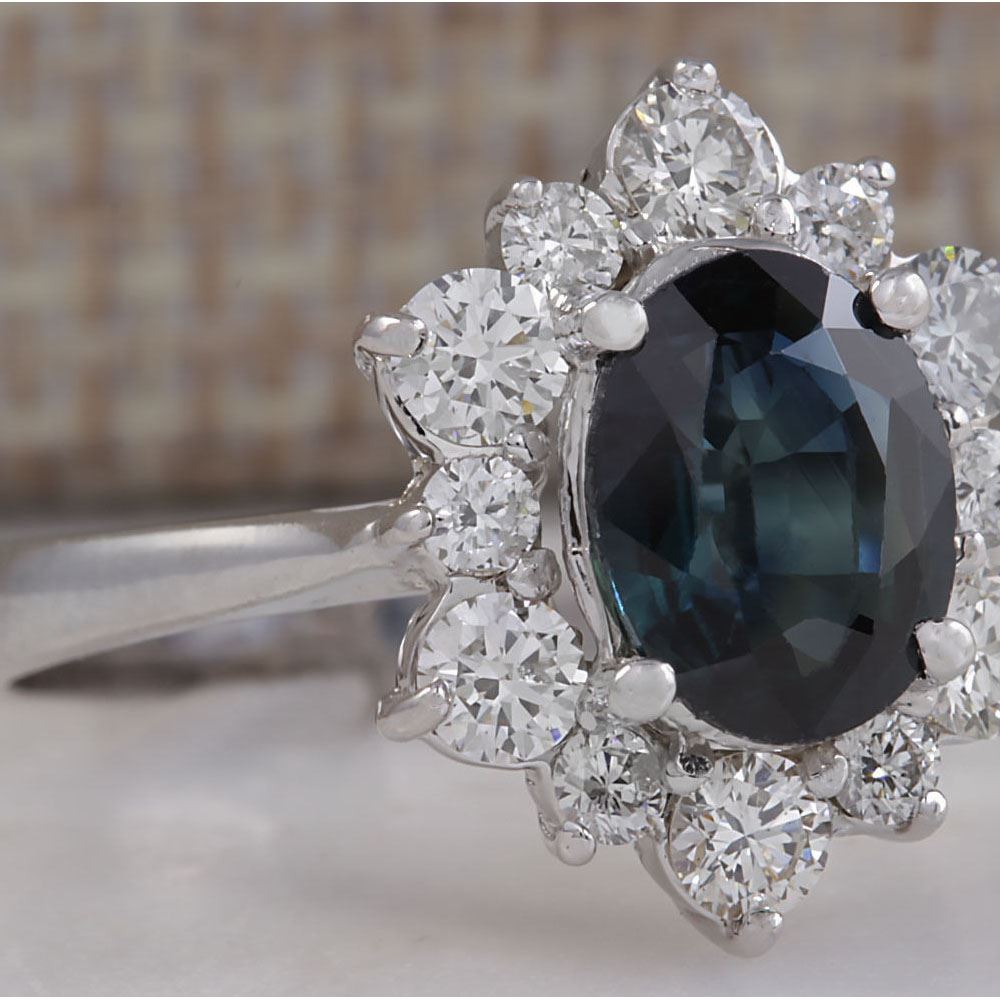 2.76 CTW Natural Blue Sapphire Diamond Ring 18K Solid White Gold