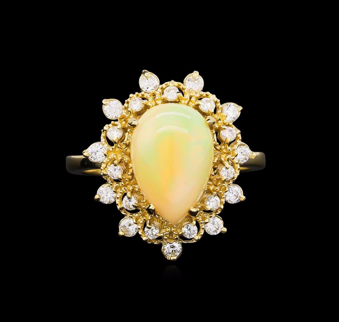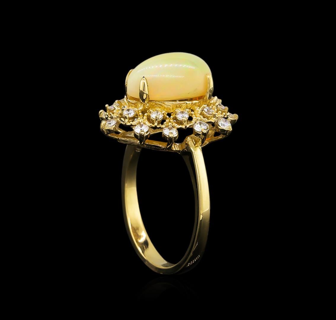 One ring featuring: 14KT yellow gold weighing 4.27 grams containing one opal with a total weight of 2.76ct and side diamonds with a total weight of 0.42ct.