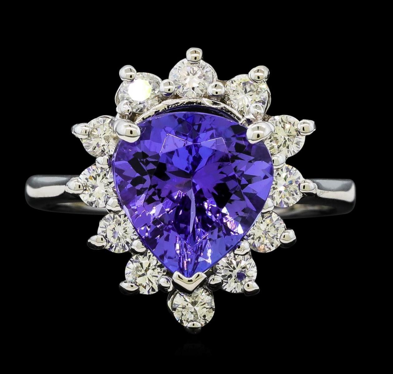 One Tanzanite and Diamond Ring including: 14KT White Gold weighing a total of 3.56 grams, Tanzanite weighing a total of 2.76ct, and 12 Diamonds weighing a total of 0.62ctw.