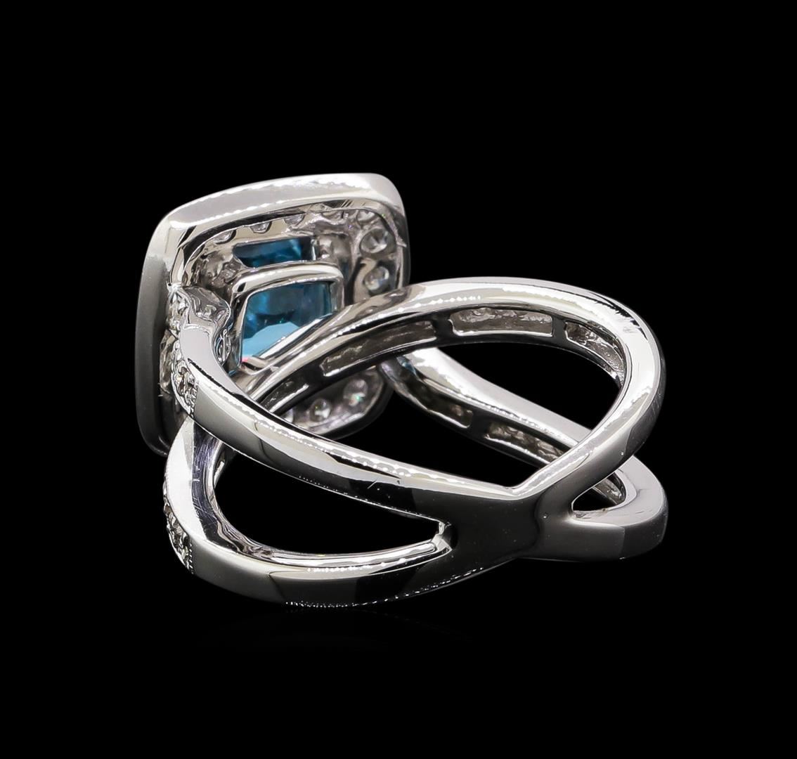 One ring : 14KT white gold weighing 5.8gm containing one blue zircon with a total weight of 2.77ct and diamonds weighing 0.85ctw.