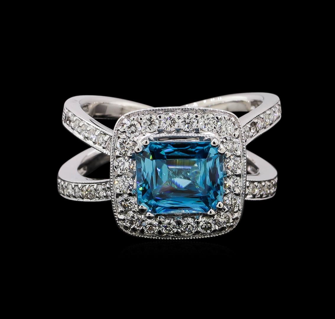 One ring : 14KT white gold weighing 5.8gm containing one blue zircon with a total weight of 2.77ct and diamonds weighing 0.85ctw.