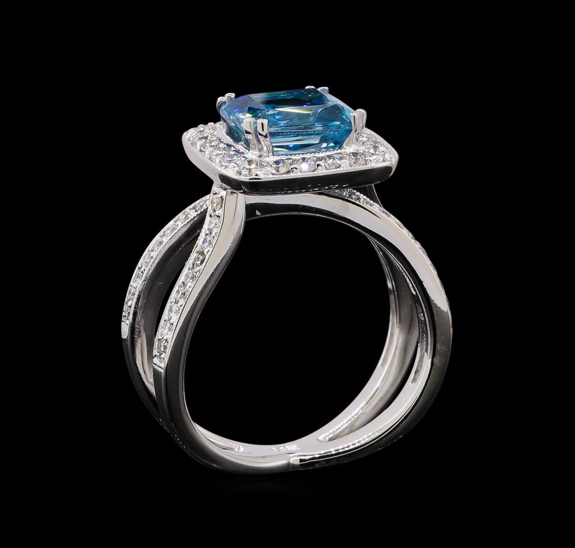 One ring : 14KT white gold weighing 5.8gm containing one blue zircon with a total weight of 2.77ct and diamonds weighing 0.85ctw.