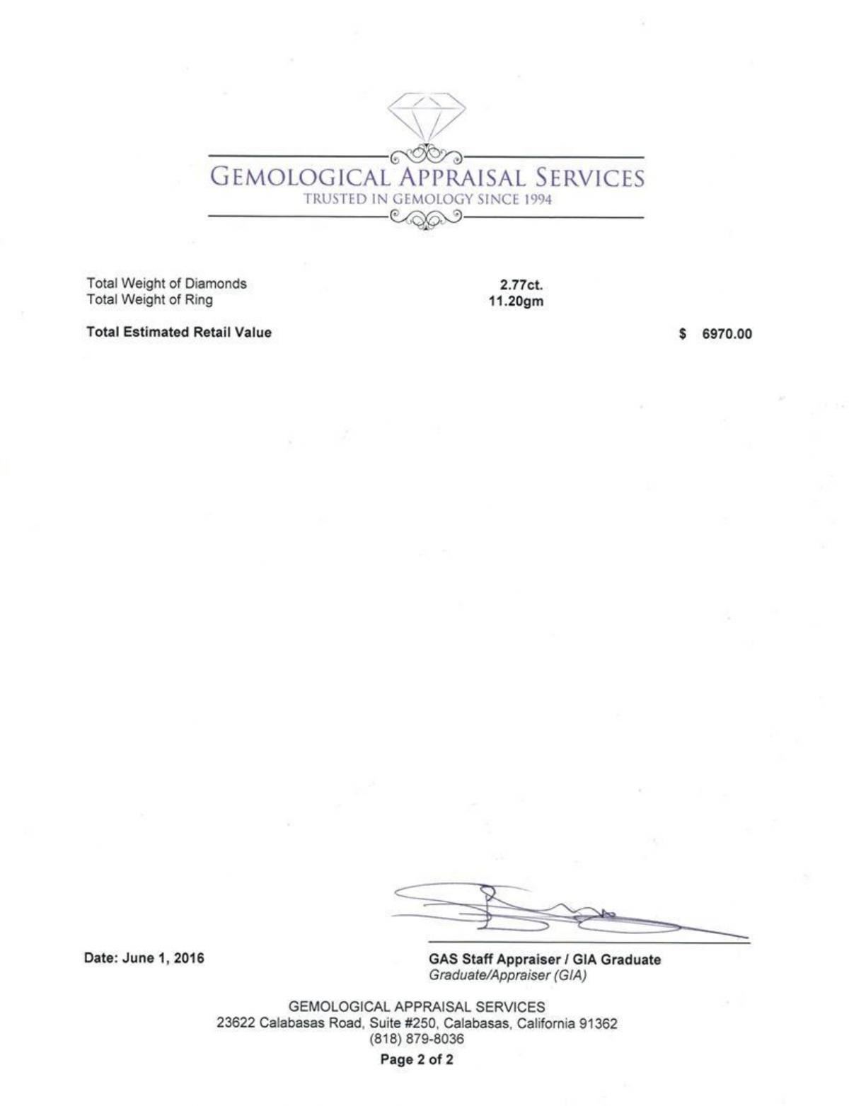 Regarding Appraised Jewelry, Watches and Loose Stones - FAA sends most jewelry, watches, accessories and loose stones out to a third-party for appraisals. All such lots are sold AS IS and may have been worn, been previously repaired, altered, customized (including having been modified with after-market stones or had the bezel changed in its entirety on certain jewelry or watches), or been embellished. For purposes of our actions, the terms custom, modified, or after-market may be used interchangeably. Such wear, repair or changes may display varying levels of evidence. The bidder hereby acknowledges that the absence of any reference to the condition of a lot does not imply the absence of wear, repairs, customization, or defects. While FAA makes every effort to call to the attention of bidders the use of after-market parts in jewelry and watches sold, the use of such parts or stones shall not constitute a warranty or representation that the items are original in their entirety. These modifications, customizations, and alterations may impair the ability of the original manufacturer to repair such item or certify the item as authentic All descriptions and statements related to such lots, including measurement, authorship, source or origin, or other aspects are qualified opines and do not constitute a warranty or representation, and are provided for identification purposes only. Not all Jewelry, watches or loose stones are appraised, and the appraisals are provided for bidders only in certain instances at the discretion of FAA. Our appraisals are conducted by independent third-party appraisal firms. Such firms may be certified GIA Gemologists or have education in the industry or alternative certifications. Appraisals should be used for verification of gemstone and/or metal weight, size, and grade only, not actual value for resale or insurance purposes. Appraisal value should be not considered for actual value, as price varies greatly from retail locations and other merchants in different geographic locations. All Items auctioned by FAA should not be purchased with a view or expectation toward resale for appraisal price given, or to make a profit. The ultimate value for which an item can be resold may vary drastically from the appraisals listed by FAA. All dimensions and weights of such lots are approximate and are consistent with standards and practices in the industry. Condition reports are provided as a service to prospective bidders. Bidders should note that such descriptions are not warranties and that watches may need general service, change of battery or further repair work for which the buyer is solely responsible. Certain watch bands from protected species of animals (i.e. alligator, crocodile) and items made of ivory and tortoise may be subject to restrictions in certain countries.