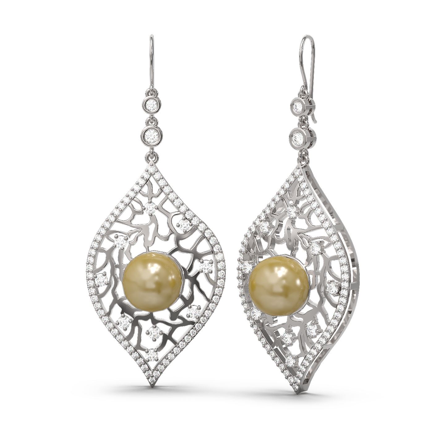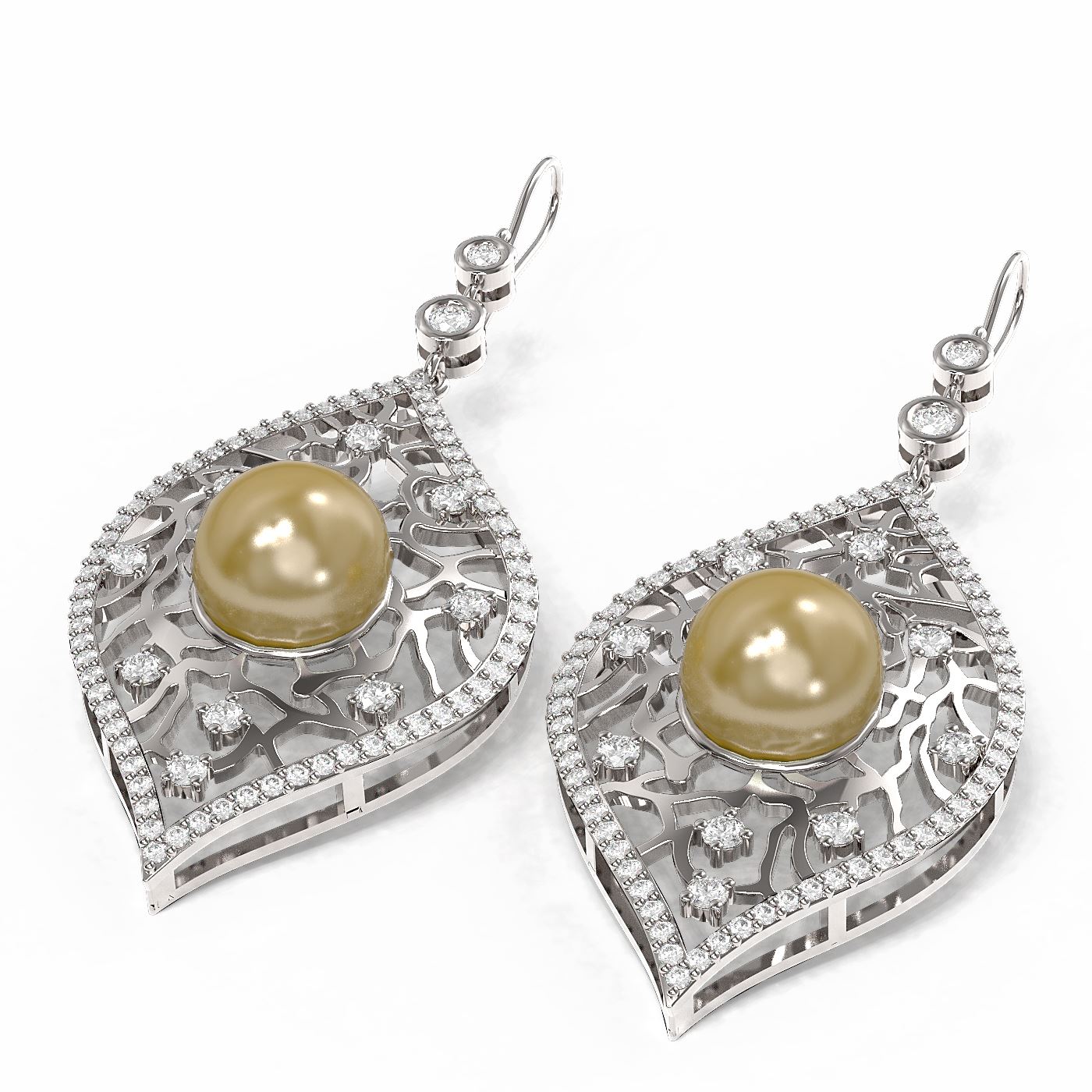 REF-262G2W - SKU: 61235 ---- 2.78 ctw Diamond & Pearl Earrings 18K White Gold