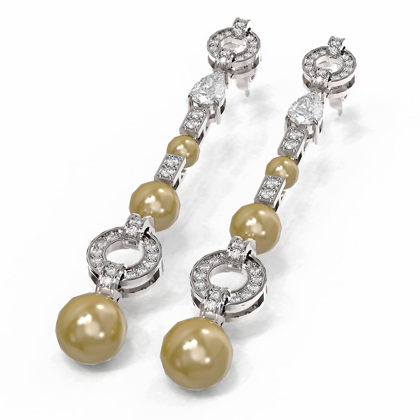 SKU: 54977 ---- 2.78 ctw Diamond & Pearl Earrings 18K White Gold