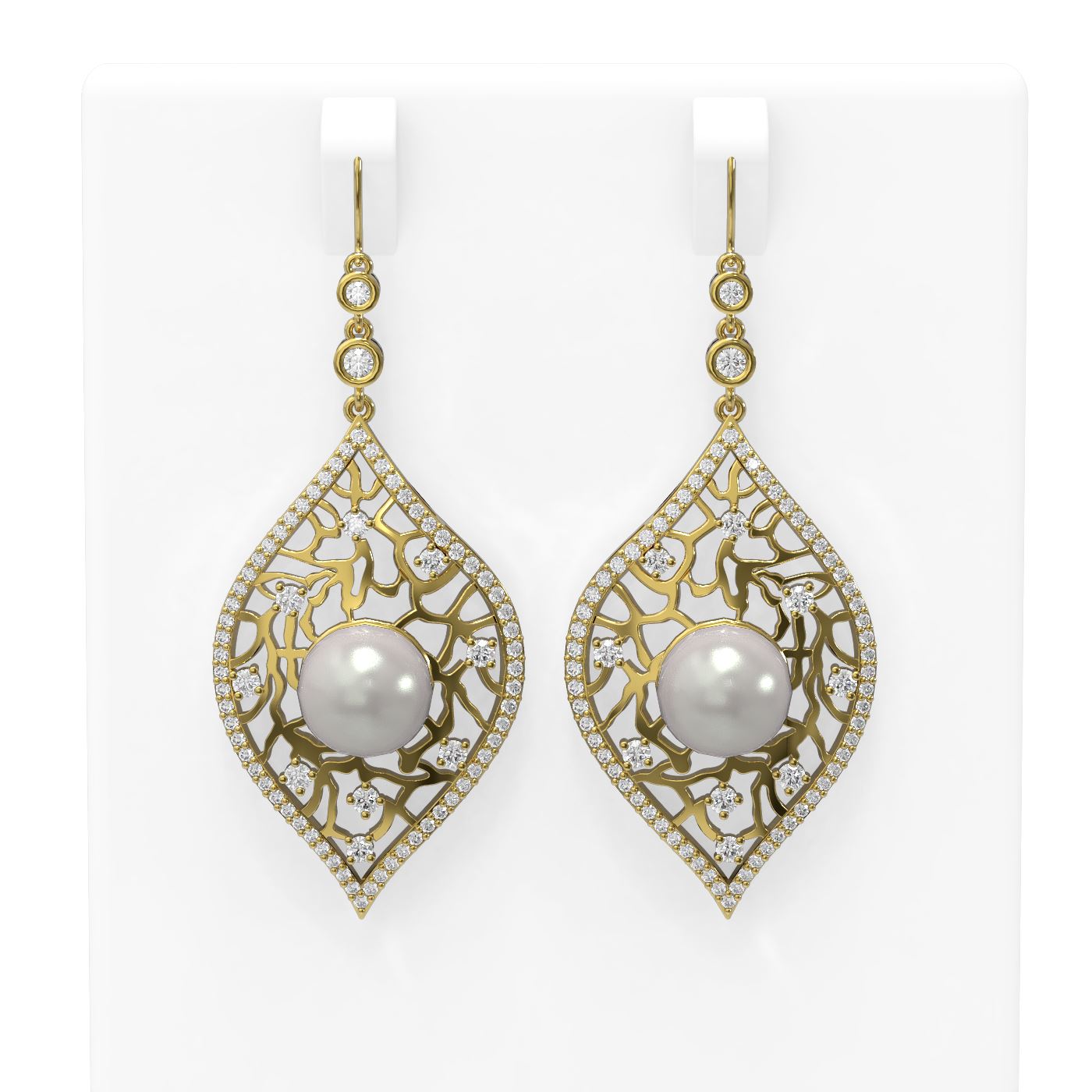 SKU: 61243 ---- 2.78 ctw Diamond & Pearl Earrings 18K Yellow Gold