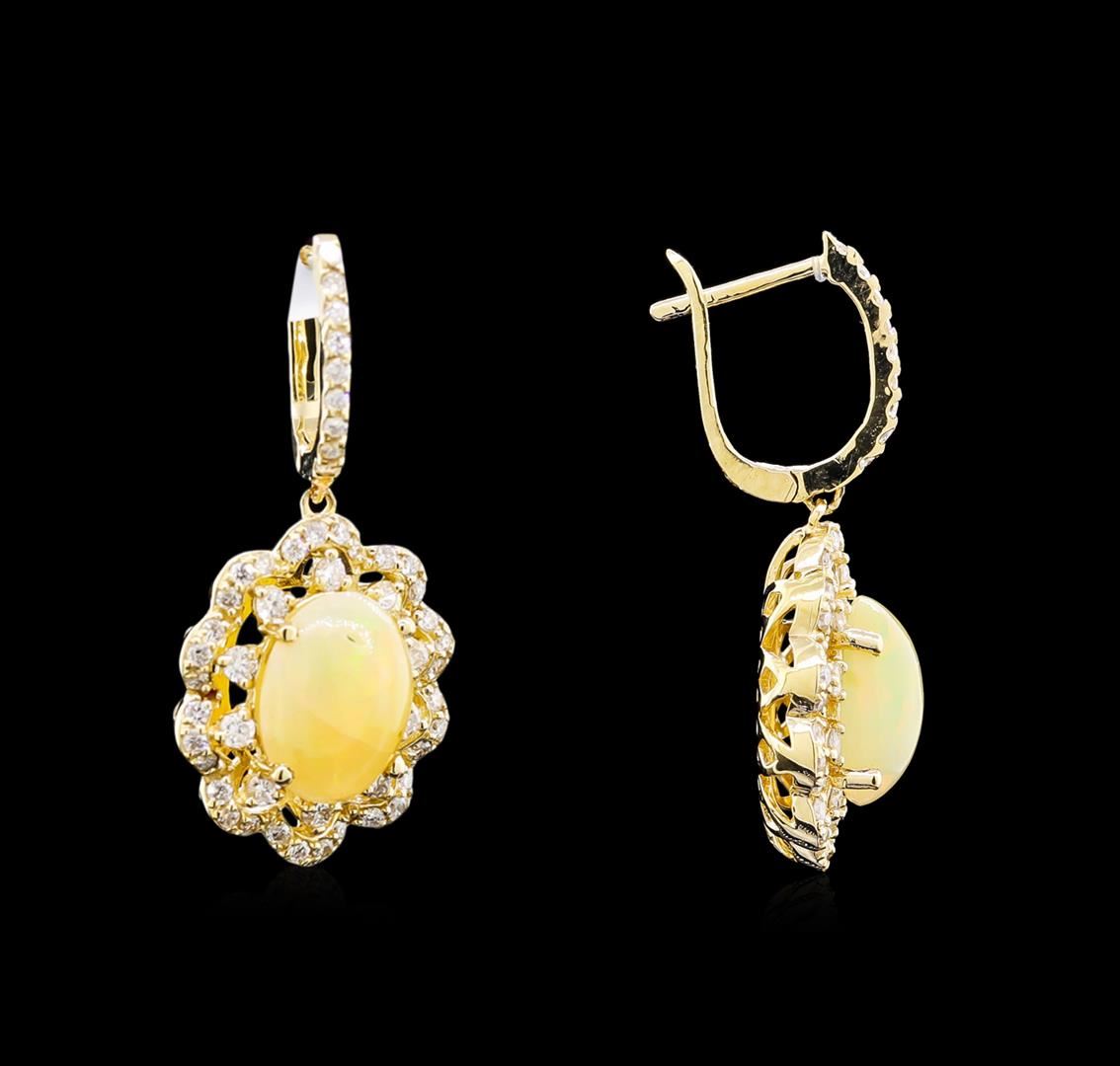 One pair of earrings featuring: 14KT yellow gold weighing 5.06 grams containing two opals with a total weight of 2.78ct and diamonds with a total weight of 0.89ct.