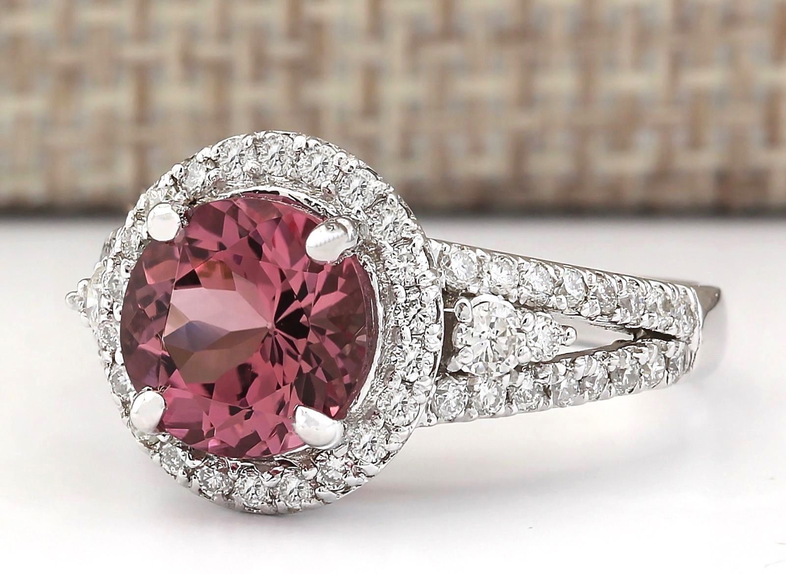 2.79 CTW Natural Pink Tourmaline And Diamond Ring 18K Solid White Gold