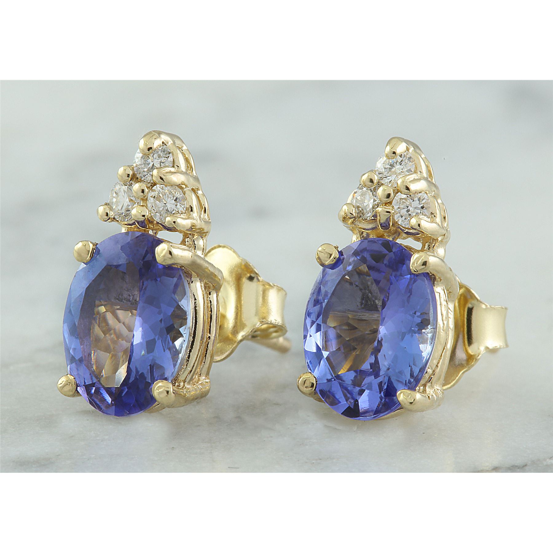 2.79 CTW Tanzanite 18K Yellow Gold Diamond Earrings