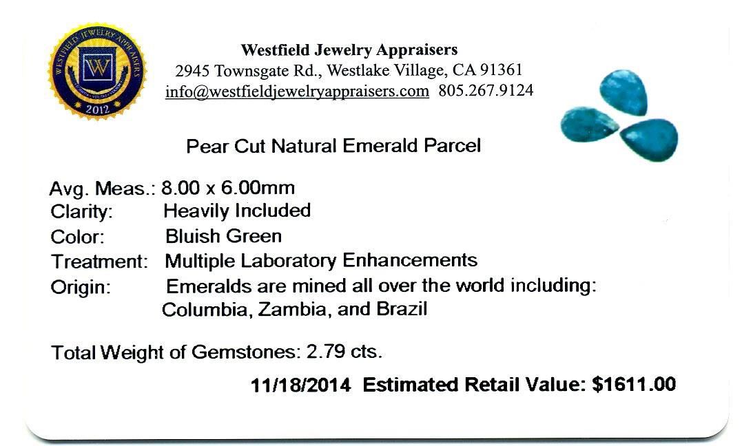 2.79cts. Pear Cut Natural Emerald Parcel Westfield Appraised at $1,611.00.