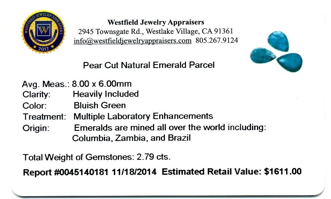 One 2.79 ctw Pear Cut Natural Emerald Parcel.