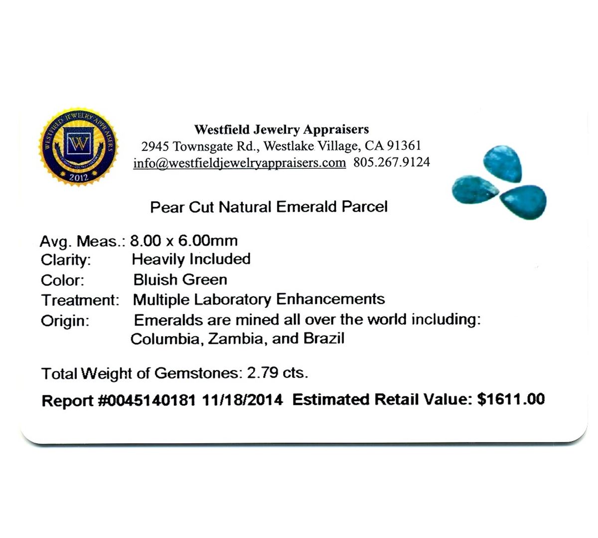 2.79cts. Pear Cut Natural Emerald Parcel Westfield Appraised at $1,611.00.