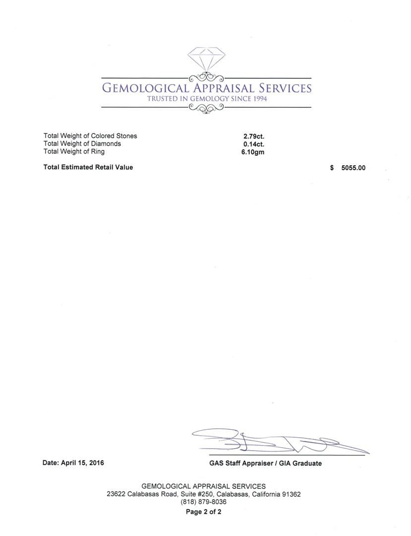 Not all Jewelry, watches or loose stones are appraised and the appraisals are provided for bidders only in certain instances at the discretion of SAA. Our appraisals are conducted by independent third-party appraisal firms. Such firms may be certified GIA Gemologists or have education in the industry or alternative certifications. Appraisals should be used for verification of gemstone and/or metal weight, size, and grade only, not actual value for resale or insurance purposes. Appraisal value should be not considered for actual value, as price varies greatly from retail locations and other merchants in different geographic locations. All Items auctioned by SAA should not be purchased with a view or expectation toward resale for appraisal price given, or to make a profit. The ultimate value for which an item can be resold may vary drastically from the appraisals listed by SAA.