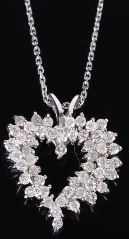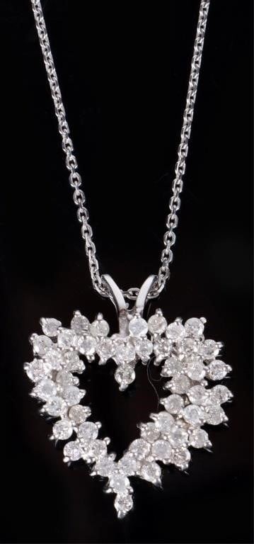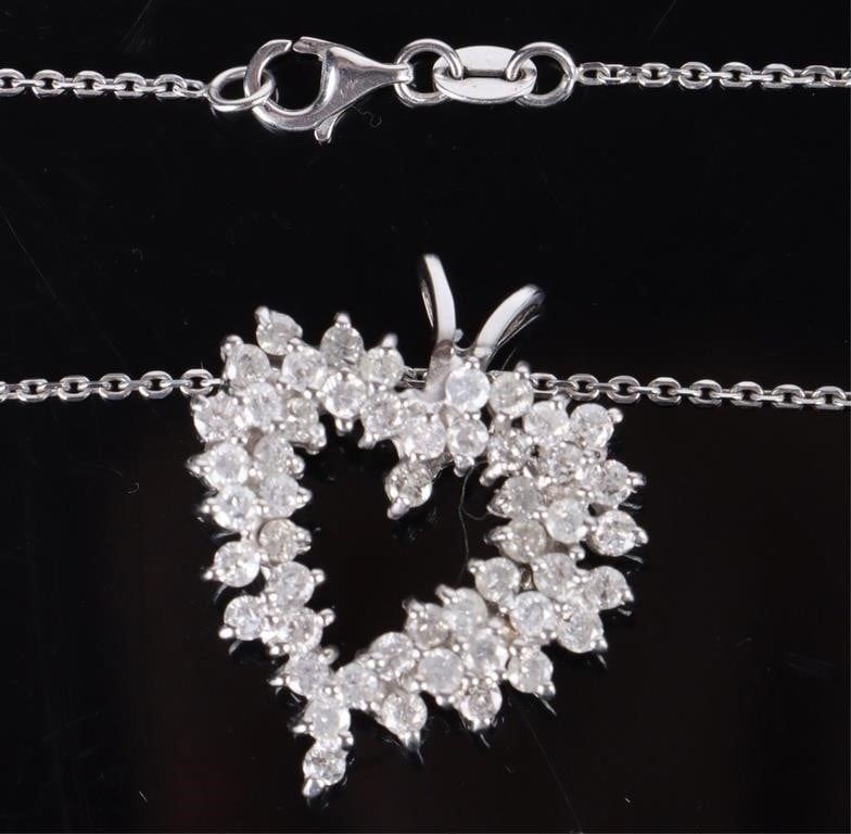 Beautiful 2.7CTW diamond heart pendant on a 14K white gold chain.