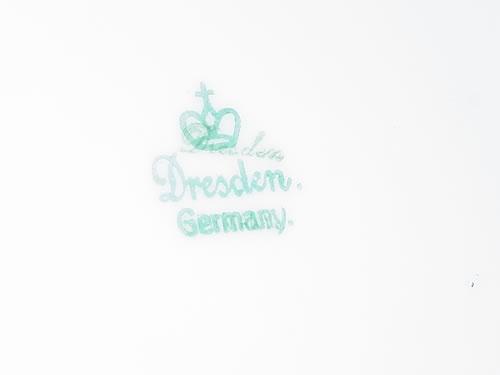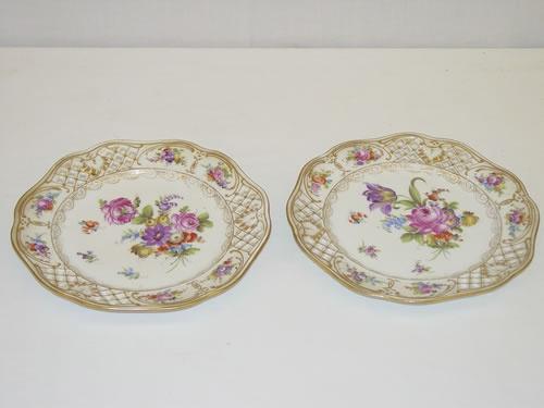 (2) 8 1/4" DRESDEN RETICULATED PLATES DECORATED W/ FLORAL MOTIF-GREEN CROWN & DRESDEN STAMP, GERMANY ON BACK - MINOR WEAR