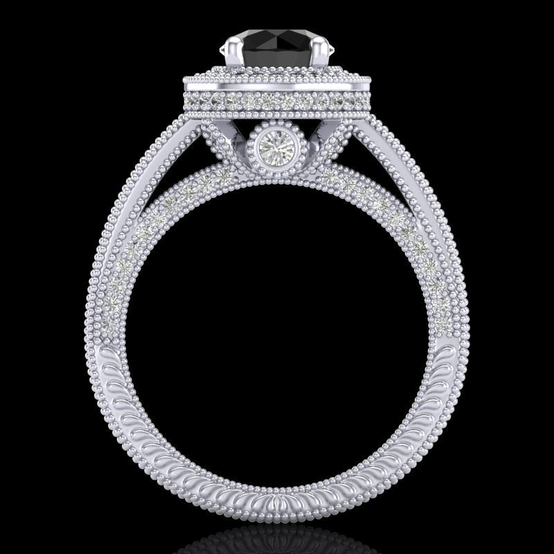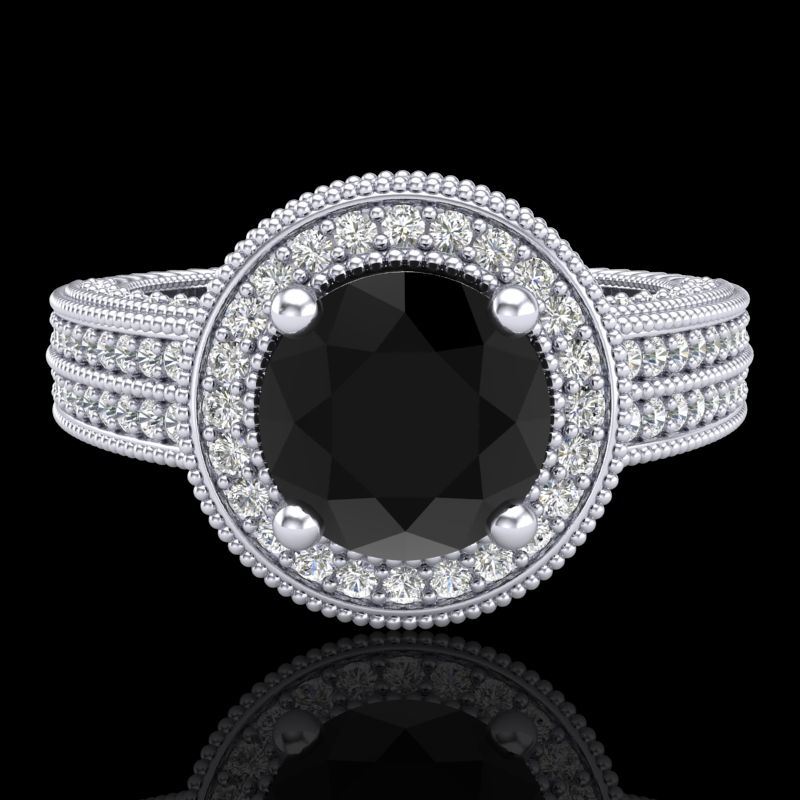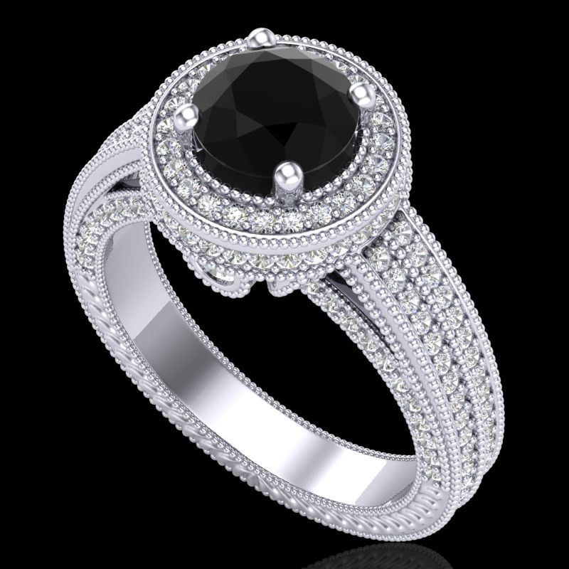 REF-236H4A -38003 ---- 2.8 CTW Fancy Black Diamond Solitaire Engagement Art Deco Ring 18K White Gold ---- Luxury Designer Brand Ring Appraised at $14,300 Certificate Number US38003 18k White gold, Ring Size is 7, Ring measuring approx. Uniform, weighing in total approx. 11 grams. Made in the USA and is stamped 18k, Main stone 1 carat total weight containing 1 pieces of Black Opaque color with VS quality Round shape cut Diamond , Stone #2 1.8 carat total weight containing 214 pieces of H-I color with VS/SI quality Round shape cut Diamond