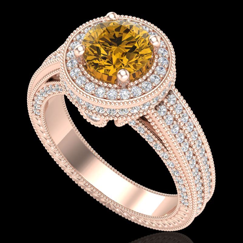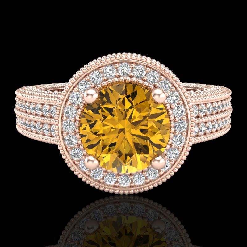REF-327M3H -38009 ---- 2.8 CTW Intense Fancy Yellow Diamond Engagement Art Deco Ring 18K Rose Gold ---- Luxury Designer Brand Ring Appraised at $19,800 Certificate Number US38009 18k Rose gold, Ring Size is 7, Ring measuring approx. Uniform, weighing in total approx. 11 grams. Made in the USA and is stamped 18k, Main stone 1 carat total weight containing 1 pieces of Intense Fancy Yellow color with SI quality Round shape cut Diamond , Stone #2 1.8 carat total weight containing 214 pieces of H-I color with VS/SI quality Round shape cut Diamond