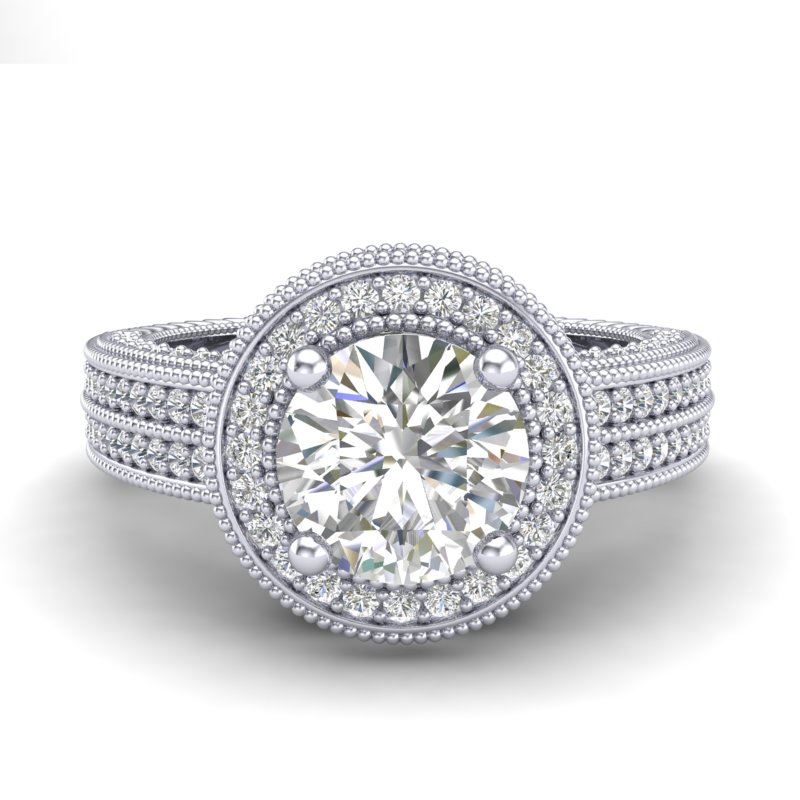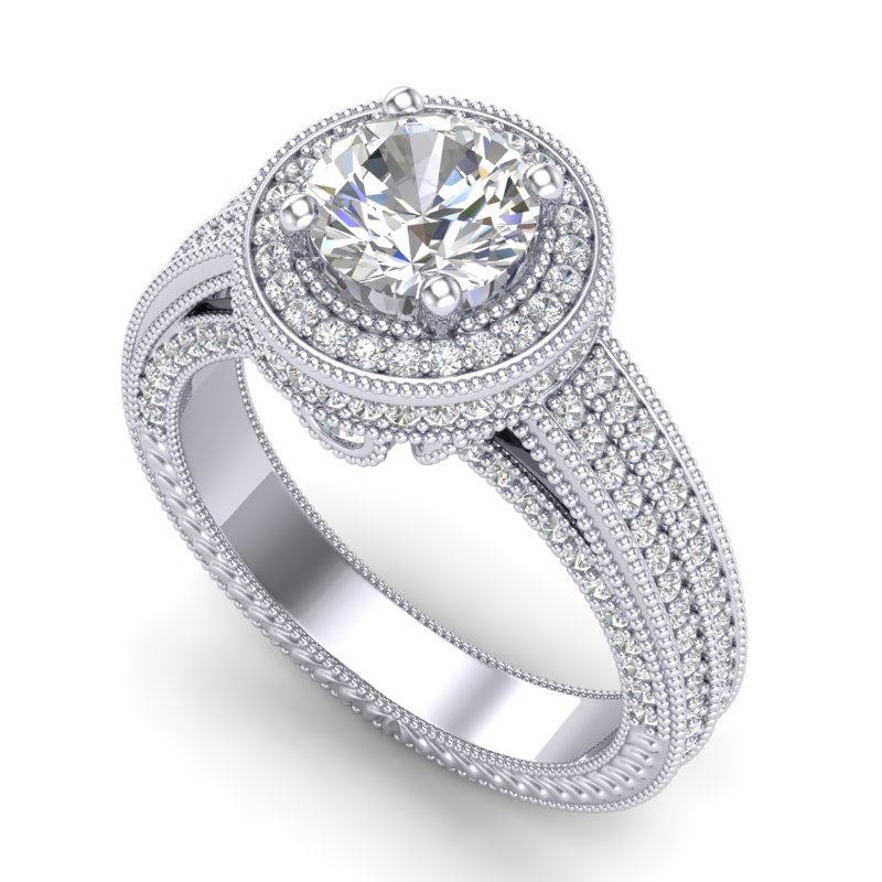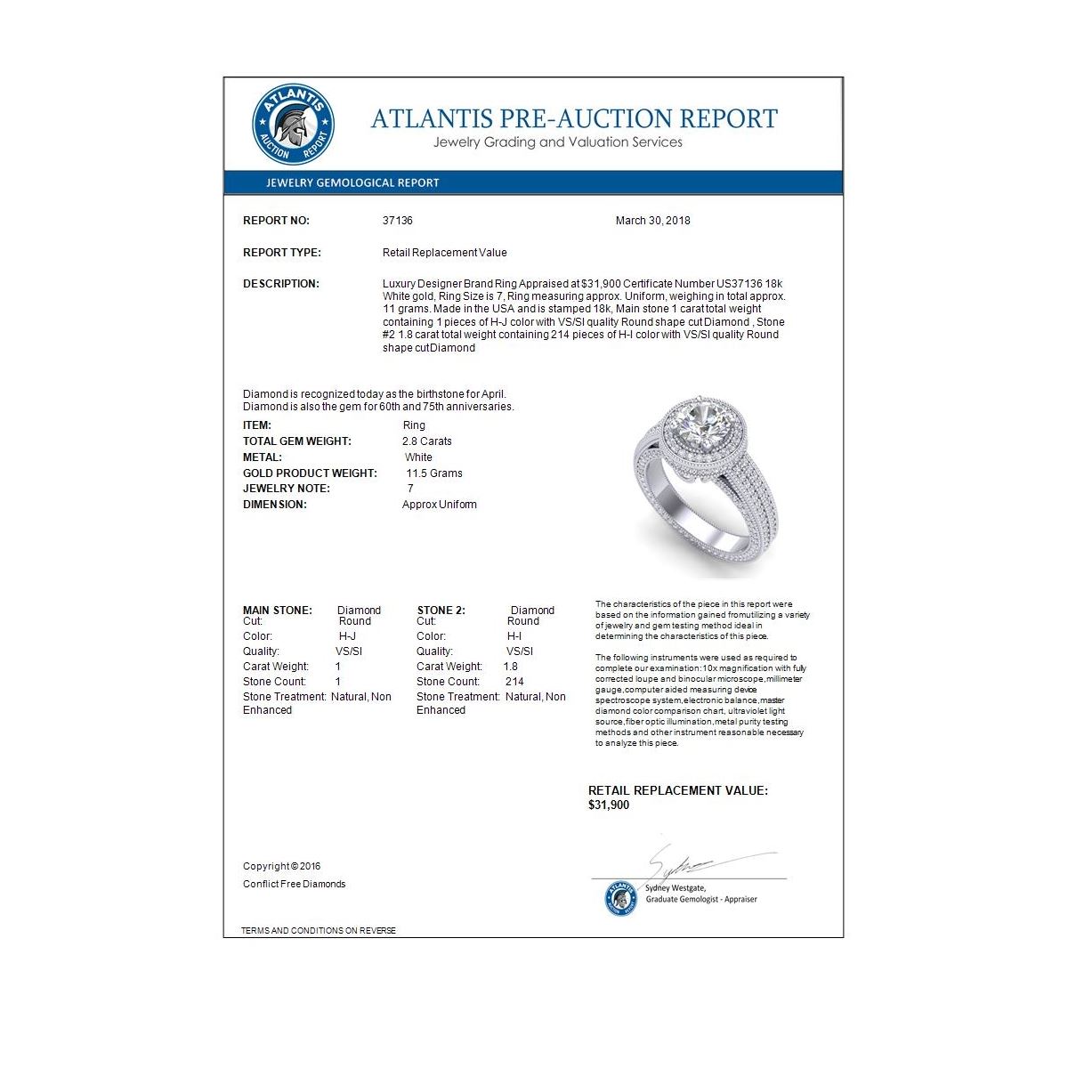 REF-527Y3K -37136 ---- 2.8 CTW VS/SI Diamond Solitaire Art Deco Ring 18K White Gold ---- Luxury Designer Brand Ring Appraised at $31,900 Certificate Number US37136 18k White gold, Ring Size is 7, Ring measuring approx. Uniform, weighing in total approx. 11 grams. Made in the USA and is stamped 18k, Main stone 1 carat total weight containing 1 pieces of H-J color with VS/SI quality Round shape cut Diamond , Stone #2 1.8 carat total weight containing 214 pieces of H-I color with VS/SI quality Round shape cut Diamond