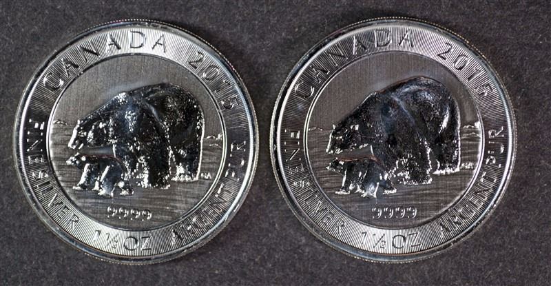 ( 2 ) 8 DOLLAR 1,5 OUNCE.999 SILVER 2015 CANADA BEAR POLAR BEAR AND CUB COINS