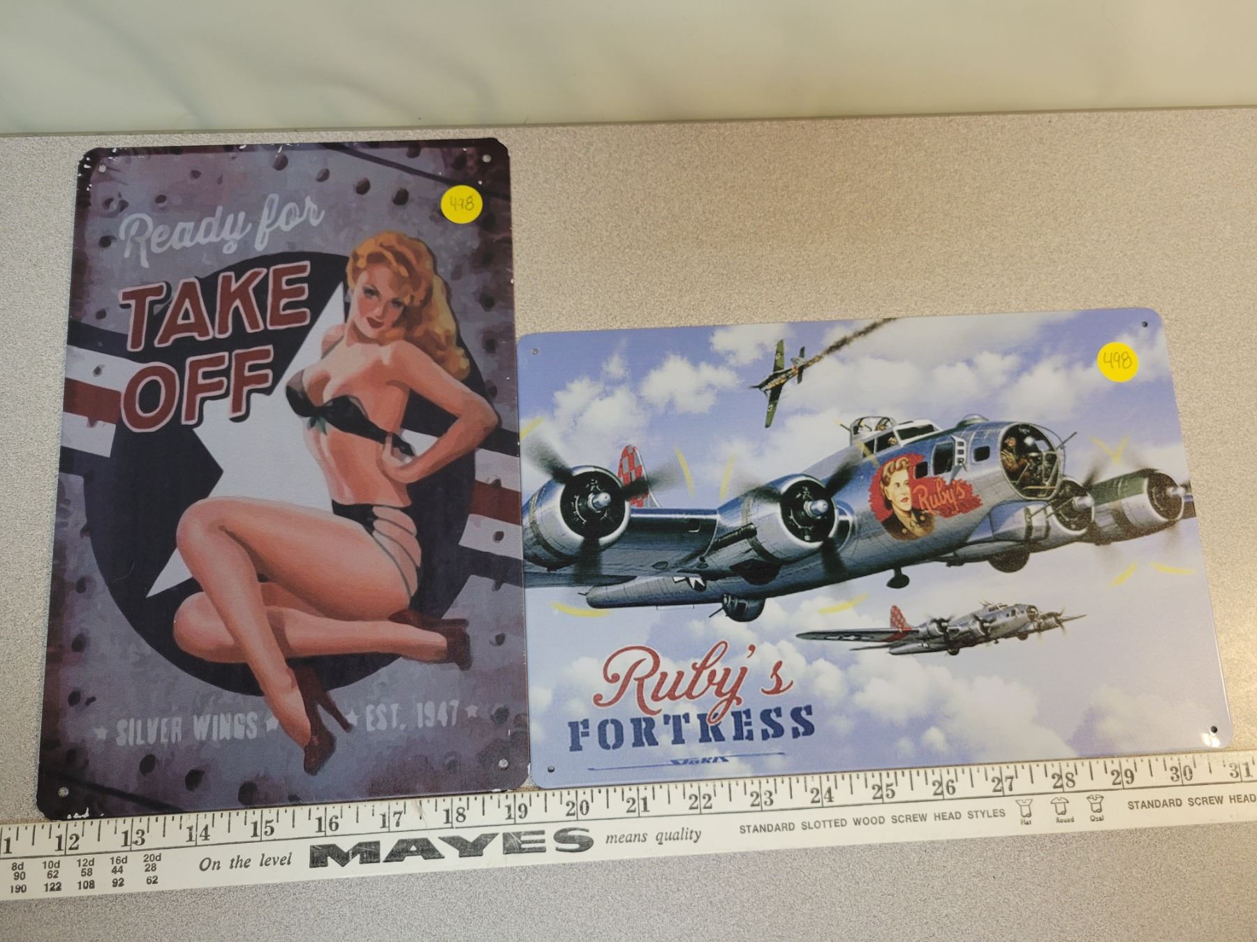 2 8" X 11" tin signs "Ready for takeoff" & "Ruby's fortress"