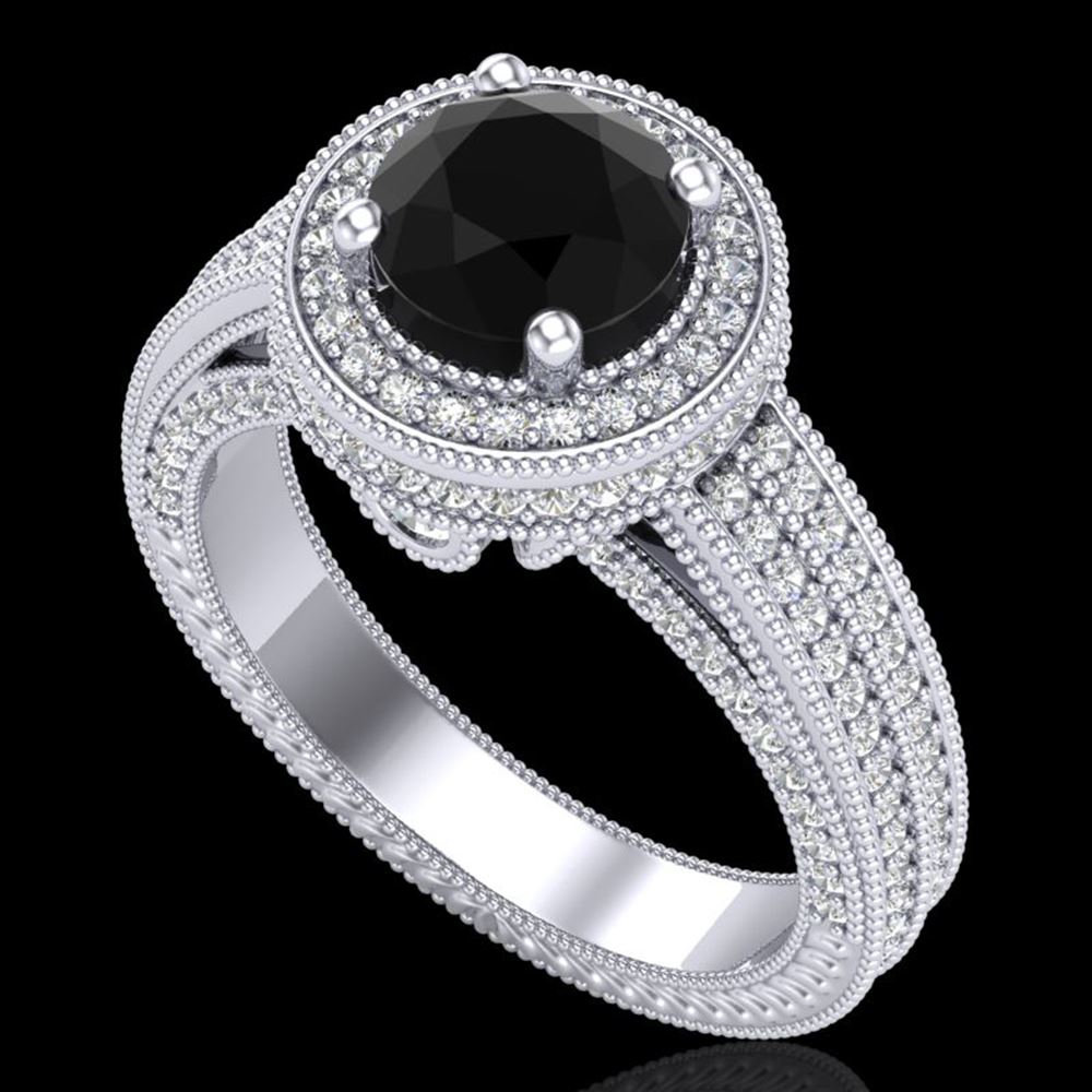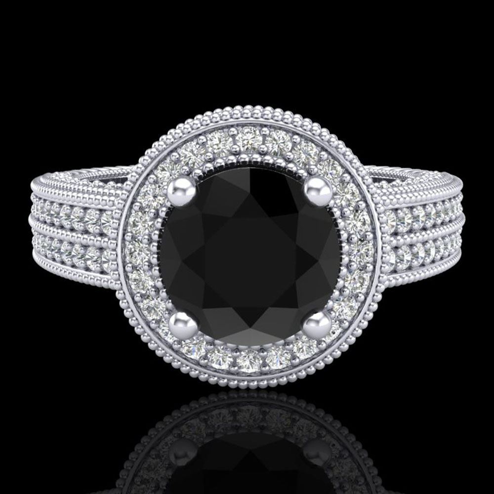 REF-236F4M - SKU: 38003 ---- 2.8 ctw Fancy Black Diamond Engagment Art Deco Ring 18k White Gold