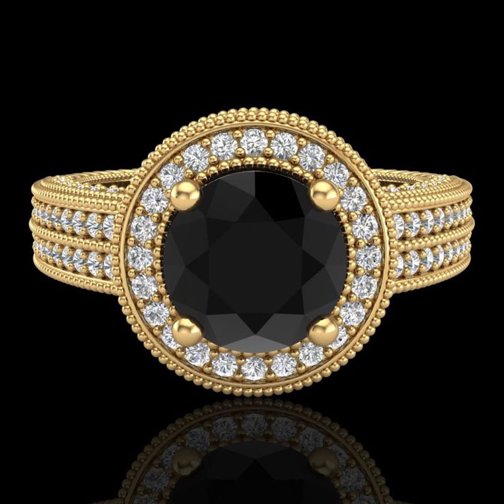 REF-236H4R - SKU: 38005 ---- 2.8 ctw Fancy Black Diamond Engagment Art Deco Ring 18k Yellow Gold
