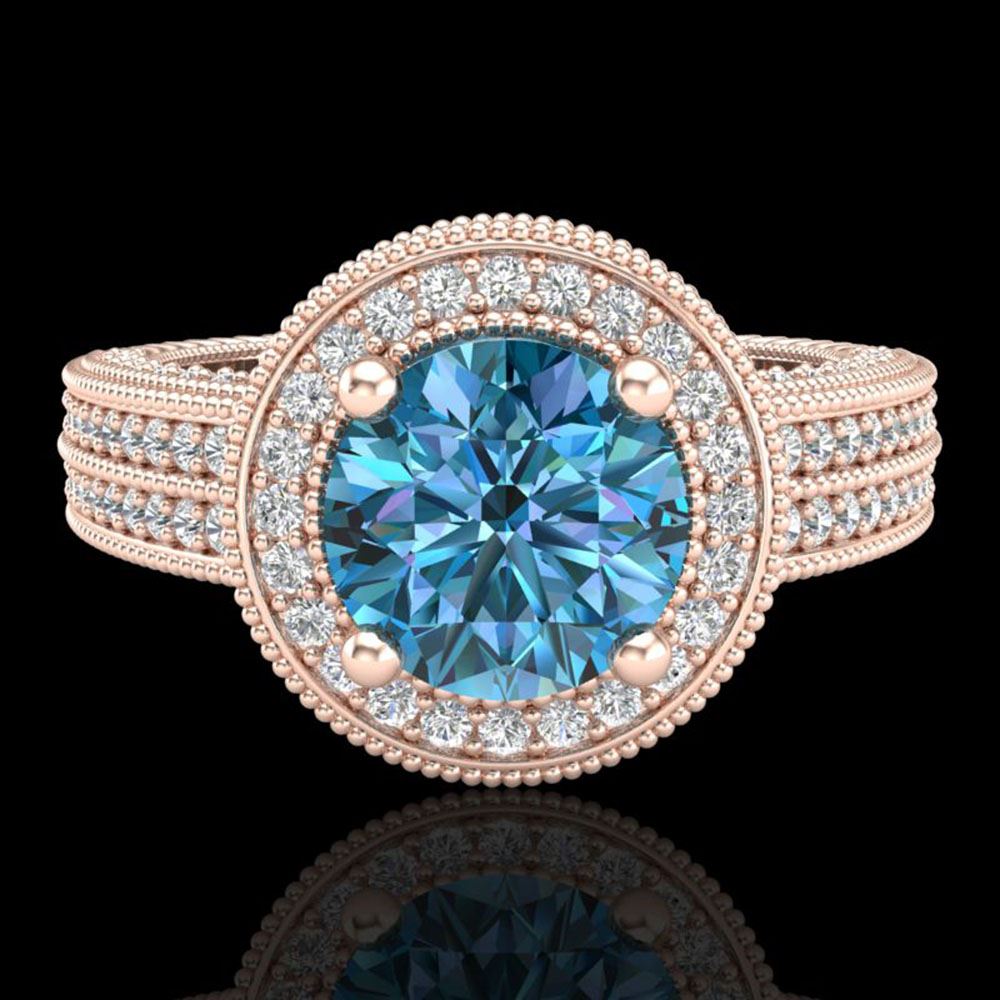 REF-327Y3X - SKU: 38007 ---- 2.8 ctw Intense Blue Diamond Engagment Art Deco Ring 18k Rose Gold