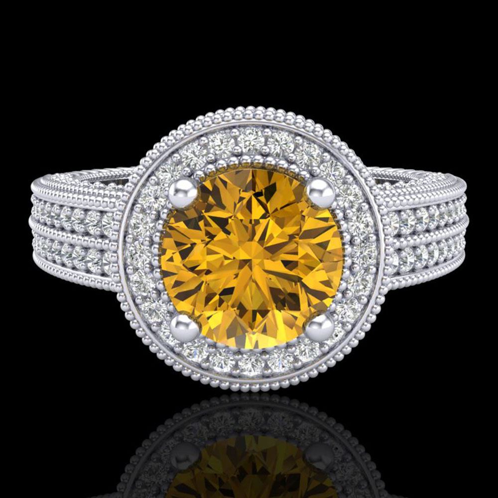 REF-427R3K - SKU: 38008 ---- 2.8 ctw Intense Fancy Yellow Diamond Art Deco Ring 18k White Gold
