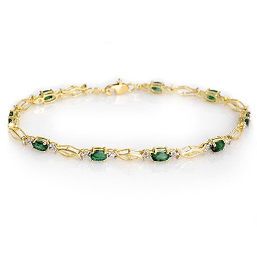 REF-26X9T -10845 ---- 2.80 CTW Emerald Bracelet 10K Yellow Gold ---- Luxury Designer Brand Bracelet Appraised at $1,800 Certificate Number US10845 10k Yellow gold, Bracelet Size is 7 Inches, Bracelet measuring approx. 7" x 1/8", weighing in total approx. 4.5 grams. Made in the USA and is stamped 10k, Main stone 2.8 carat total weight containing 9 pieces of Intense Green color with AAA quality Oval shape cut Emerald , Stone #2 carat total weight containing pieces of color with quality shape cut