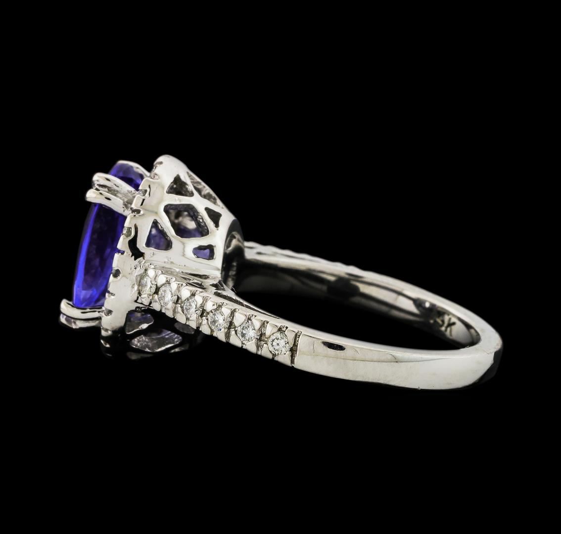 One Tanzanite and Diamond Ring featuring: 14KT White Gold with a total weight of 5.96 grams, Tanzanite with a total weight of 2.80ct, and 26 diamonds with a total weight of 0.38ctw.