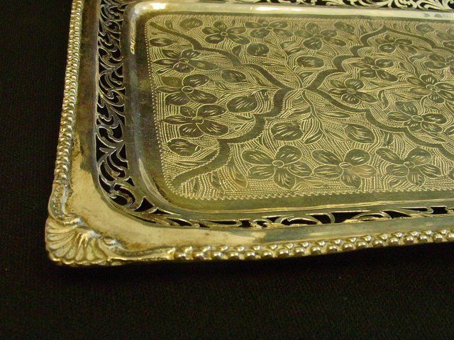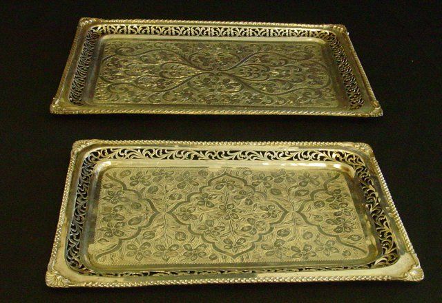 Approx. 17 & 7 ozt. Reticulated edge, "Floral" design. Approx. 14" x 9" & 11.5" x 7.5". Please read our terms of sale.
