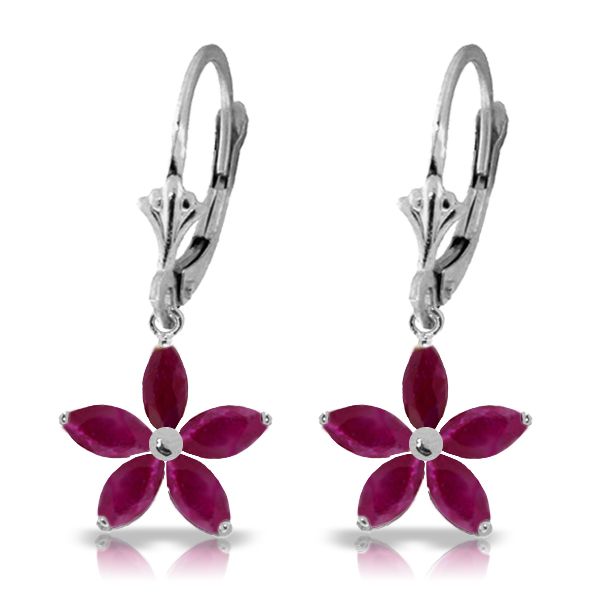 Feel the "Flower Power" with these 14K Solid Gold Leverback Earring with Natural Rubies. If you like to spread love and peace, then showing off these red beauties is one surefire way to go about it. These earrings feature a flower motif. Each earring is made by setting five 2.80 carat marquis cut Rubies into a flower shape, with each Ruby making up a petal of the flower. These earrings dangle 30mm in overall length and feature a 14K solid gold leverback style earring base. Wear these Ruby beauties to bring out the flower child in yourself and to foster a positive outlook in everyone else who sees you wearing them. This jewelry piece is shipped in an elegant black jewelry box and is accompanied by an Appraisal Certificate. Retail price: $2290