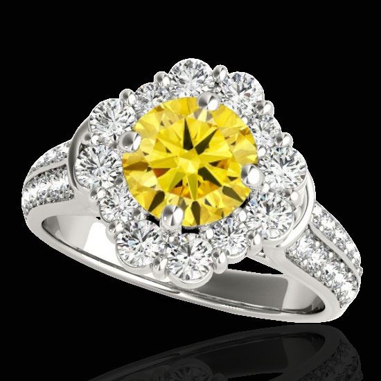 REF-361F8N -33965 ---- 2.81 CTW Certified Si/I Fancy Intense Yellow Diamond Solitaire Halo Ring 10K White Gold ---- Luxury Designer Brand Ring Appraised at $21,900 Certificate Number US33965 10k White gold, Ring Size is 7, Ring measuring approx. Uniform, weighing in total approx. 5.5 grams. Made in the USA and is stamped 10k, Main stone 1.5 carat total weight containing 1 pieces of Intense Fancy Yellow color with SI quality Round shape cut Diamond , Stone #2 1.31 carat total weight containing 40 pieces of H-I color with VS/SI quality Round shape cut Diamond